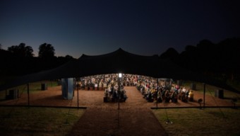 秀场坐落于伦敦核心地带,于 Burberry 定制帐篷内精彩启幕。户外意象巧妙映入室内空间,以大地色系铺就秀场舞台和宾客坐席,灵感源自英伦夏日现场音乐演出的盎然生机。